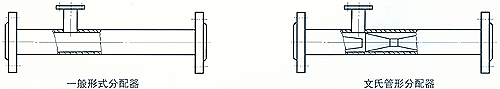 適用于二股或二股以上流體進料,當主流與次流壓力不平衡時選用文氏管形分配器, 當主流與次流壓力平衡時選用一般形式分配器。